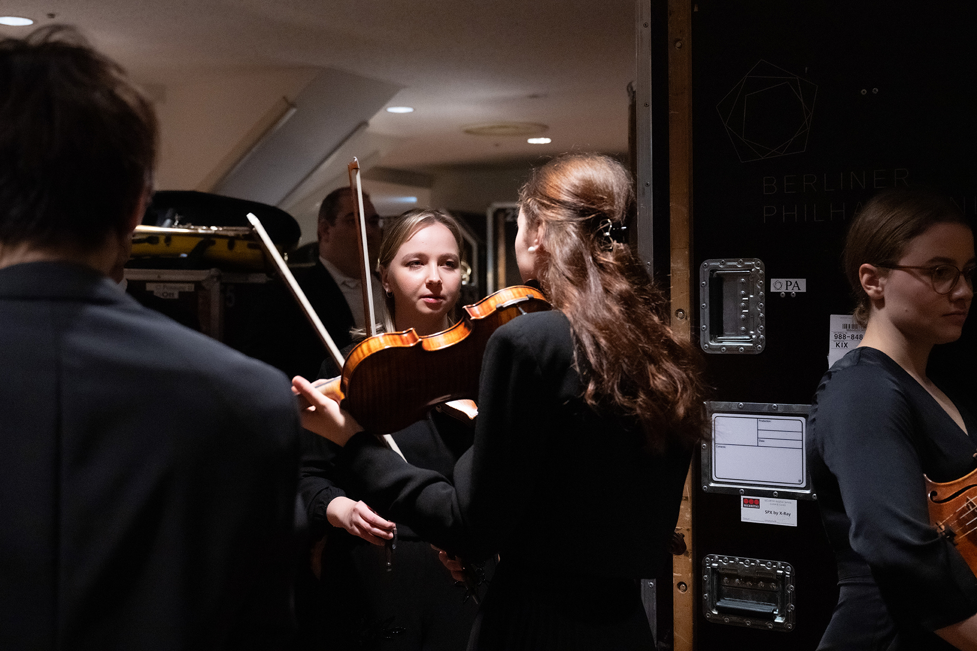 Die Geigerinnen Eva Rabchevska und Christa Maria-Stangorra kurz vor dem Auftritt. | Bild: Monika Rittershaus