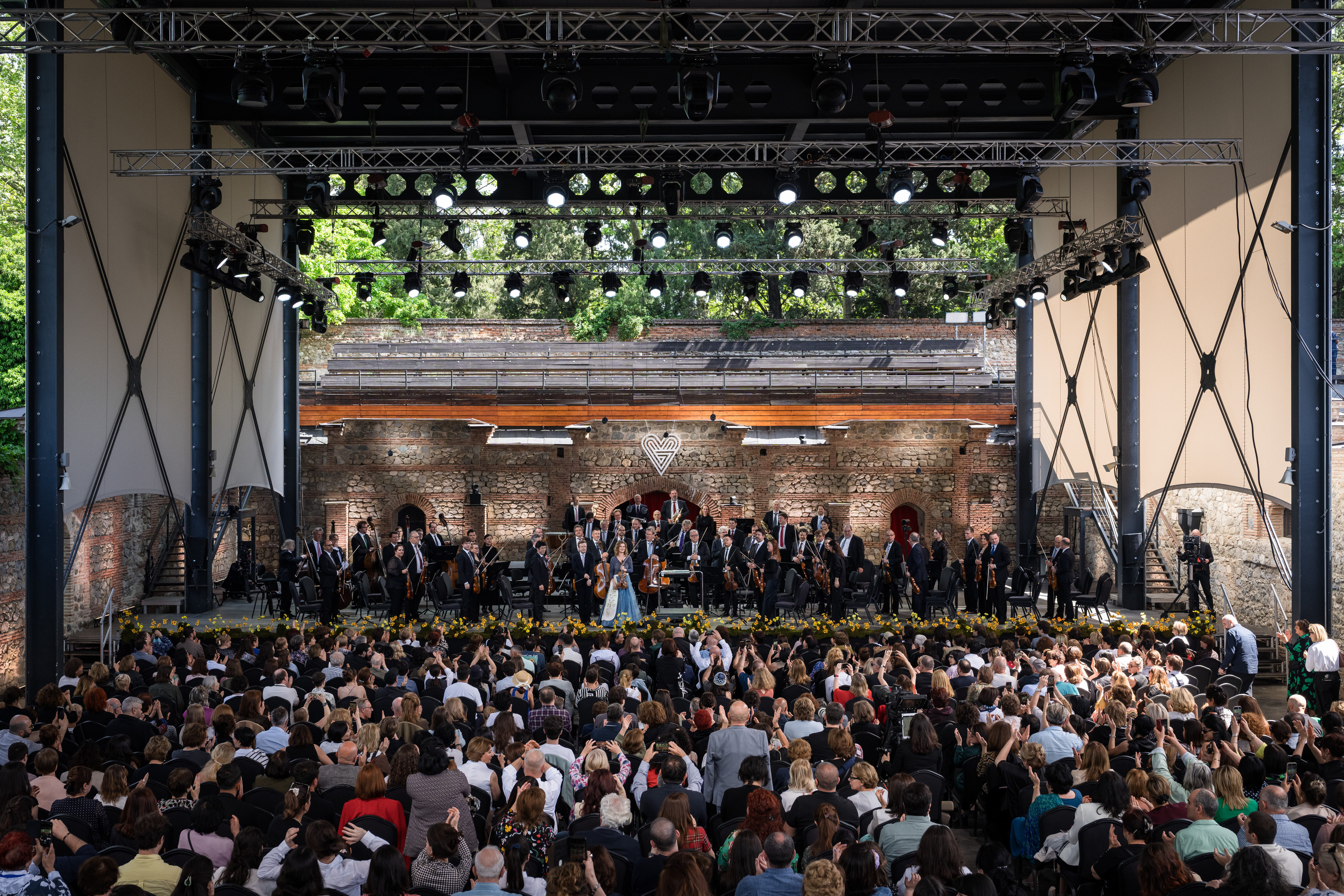 Unter der Leitung von Daniel Harding, der für Daniel Barenboim eingesprungen ist, erklingen im Amphitheater in Tsinandali neben Brahms’ Violinkonzert auch Franz Schuberts Ouvertüre aus der Zauberharfe und Ludwig van Beethovens Fünfte Symphonie. Bei der Zugabe wird es intim, Lisa Batiashvili und Streicher der Berliner Philharmoniker spielen Sulchan Tsintsadzes Georgian Miniatures.