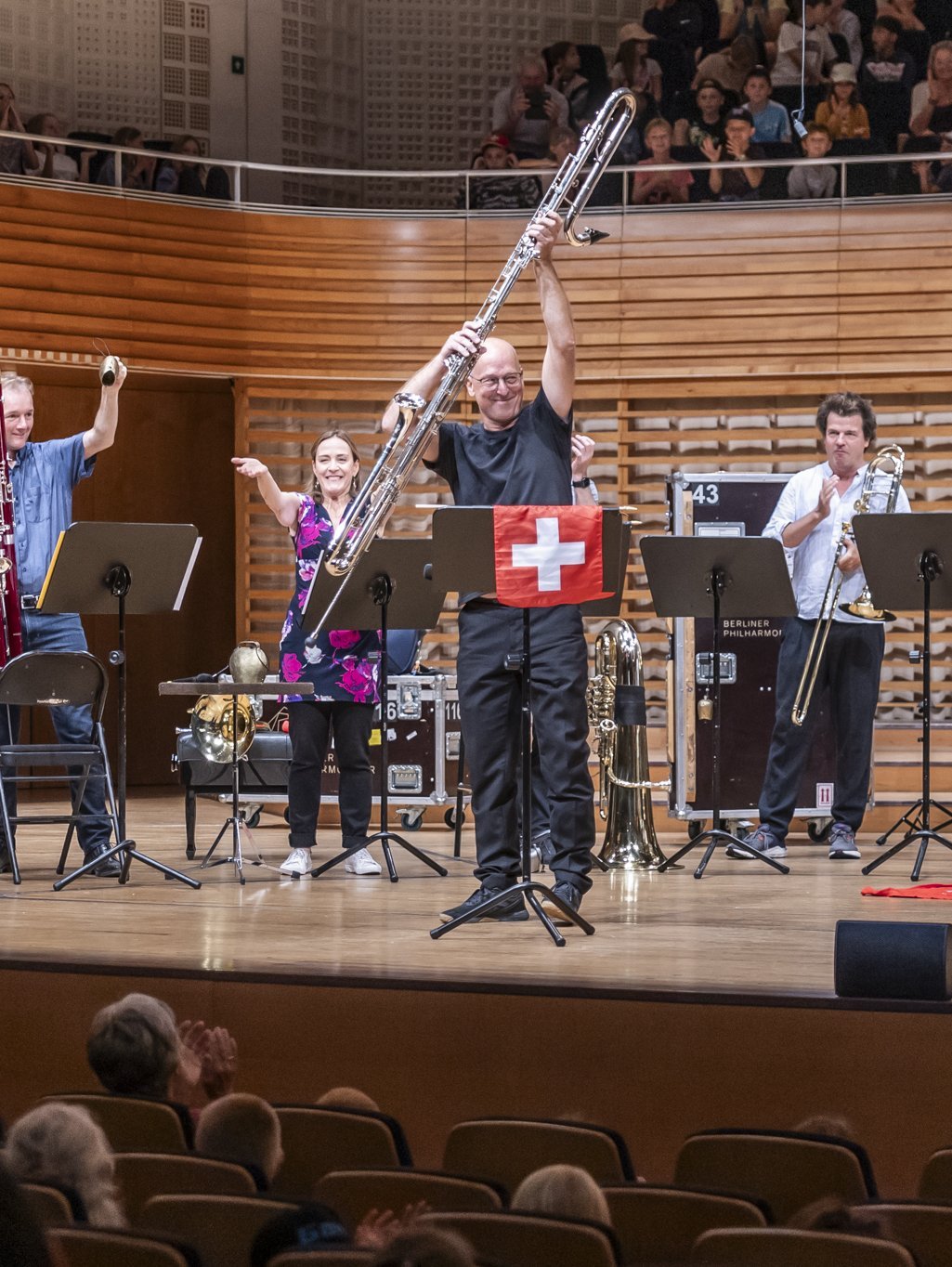 Ein Konzert, bei dem endlich all jene Instrumente zum Einsatz kommen, die (fast) nie die Melodie spielen – das gab es in Luzern beim Schulkonzert mit Mitgliedern der Berliner Philharmoniker und ihren tiefen Instrumenten. Sarah Willis suchte dabei gemeinsam mit dem Publikum, bestehend aus knapp 45 Schulklassen, Luzerns neuen Superstar. Die Herausforderung: Wer spielt den tiefsten Ton? Wer am Ende gewonnen hat, verrät unsere Bildergalerie. Und wie das geneigte Publikum das Konzert fand, sehen Sie auf der Instagram-Seite des Lucerne Festivals.