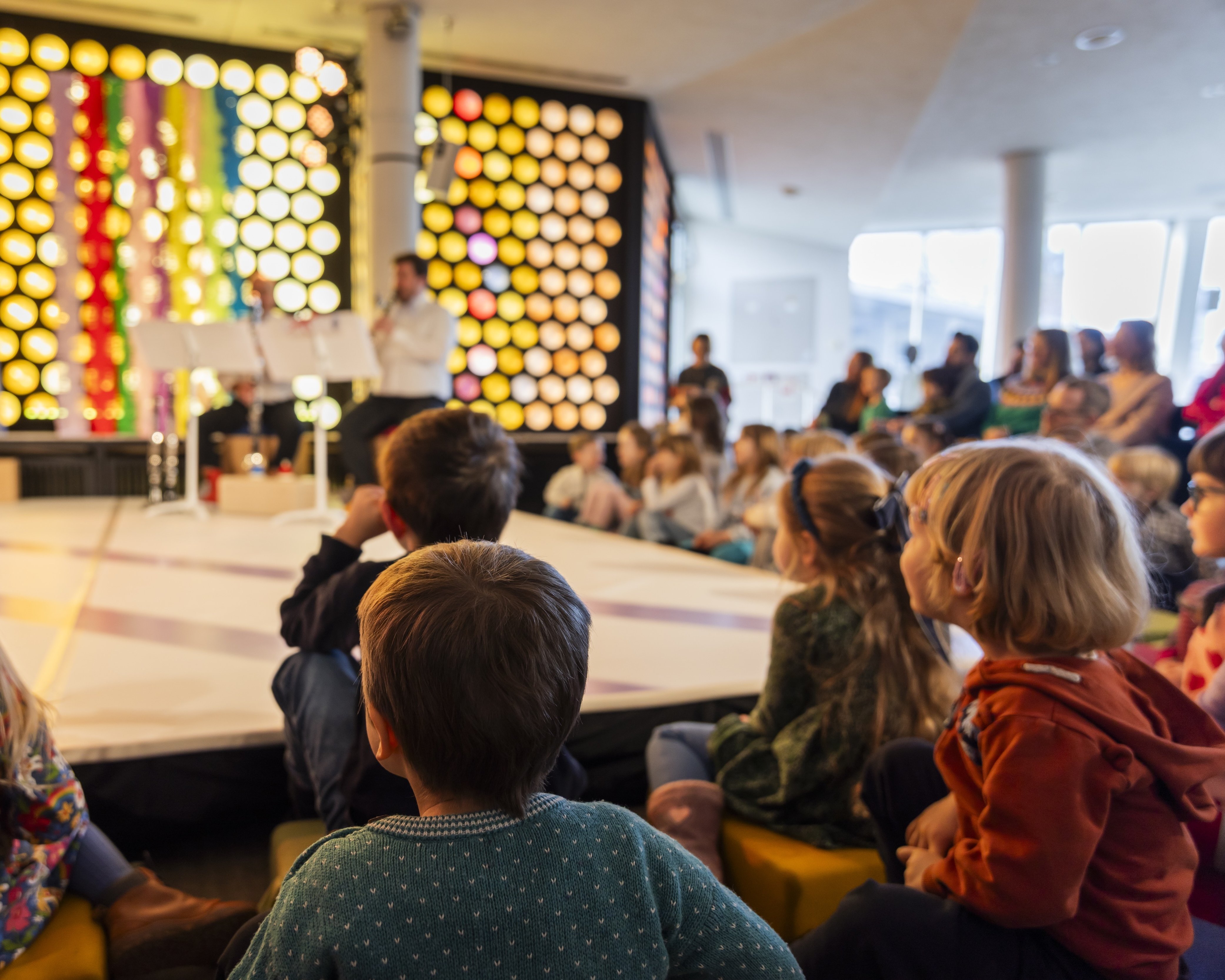 Bei den Mitmachkonzerten für unser Publikum ab 3 Jahren bringt die unmittelbare Nähe von Musik, Tanz und Rhythmus jede Faser des Körpers bei Klein und Groß in Schwingung. Jedes Konzert widmet sich anderen Instrumenten, gespielt von Mitgliedern der Berliner Philharmoniker sowie der Karajan-Akademie. Im oberen Foyer des Kammermusiksaals entsteht eine gemeinsame Bühnenfläche, die Kinder und Künstler*innen zusammenbringt. Mitmachen ist unbedingt erwünscht! Das begleitende Saison-Programmheft lädt zum Mitmachen, Spielen und Basteln ein.