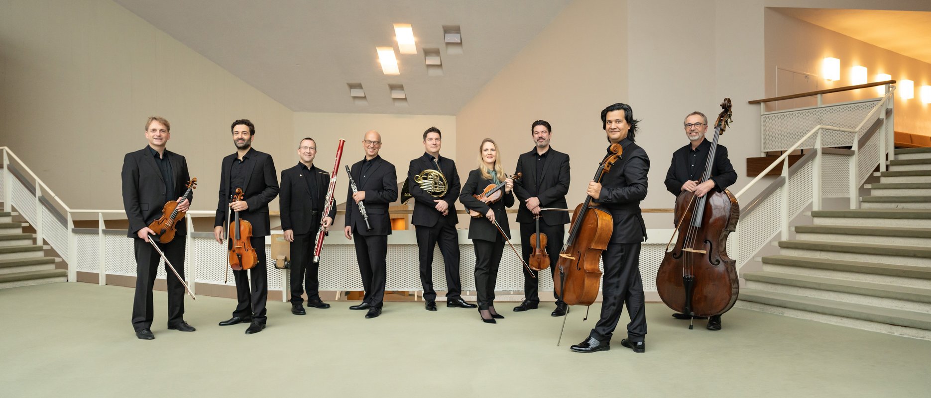 Its association with the legacy of Hans Scharoun, the visionary architect of the Berlin Philharmonie, is an expression of its artistic commitment to the treasures of the past and the challenges of the present and future. Thus, along with its Classical and Romantic core repertoire, represented by the Schubert Octet and Beethoven Septet, the ensemble also places a distinctive emphasis on contemporary music, seeking collaboration with composers (for example, Hans Werner Henze, Karlheinz Stockhausen, Aribert Reimann and György Ligeti) and commissioning and giving the premieres of numerous works.