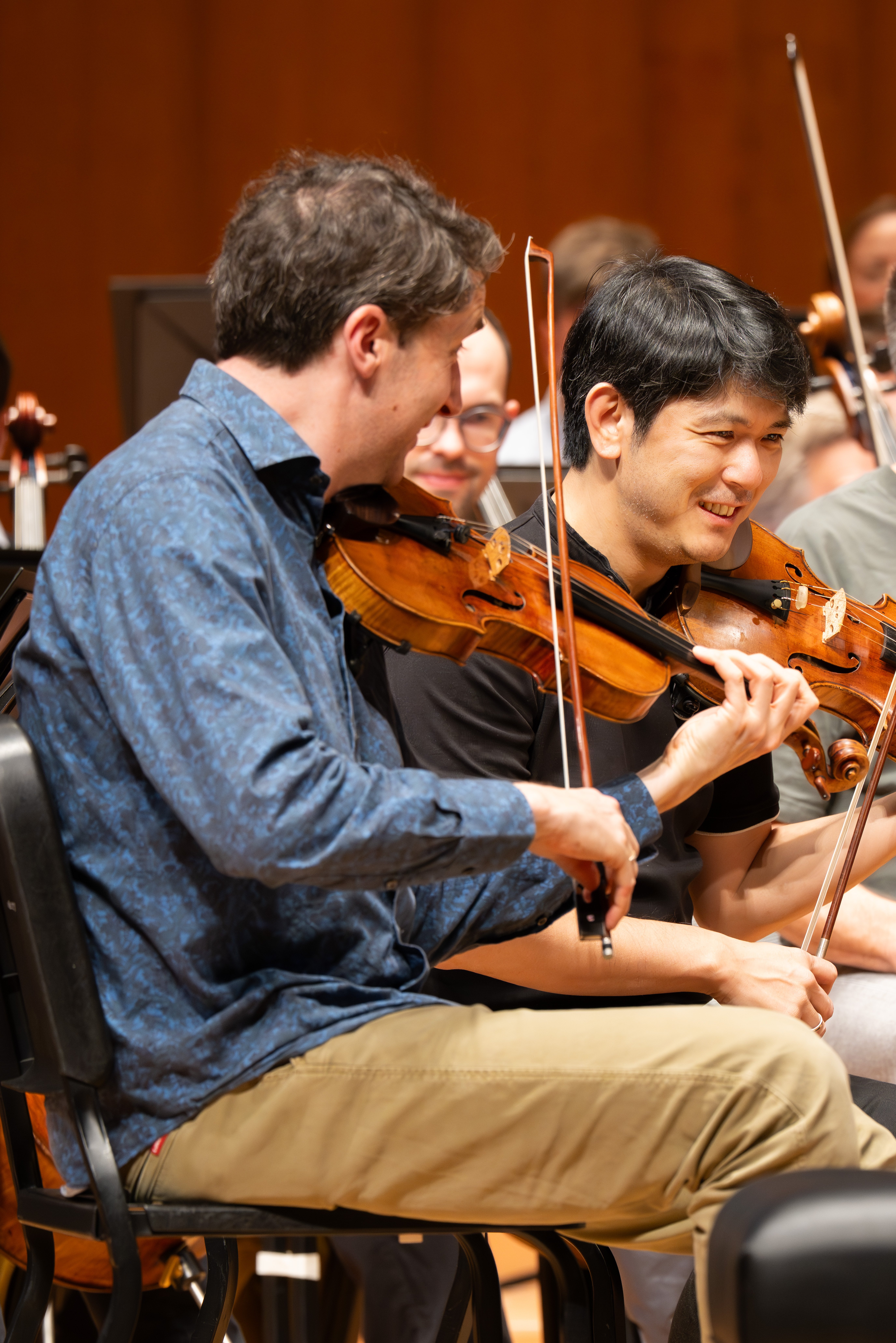Pianist Sunwook Kim mit 1. Konzertmeister Daishin Kashimoto. Bild: Monika Rittershaus | Picture: Monika Rittershaus