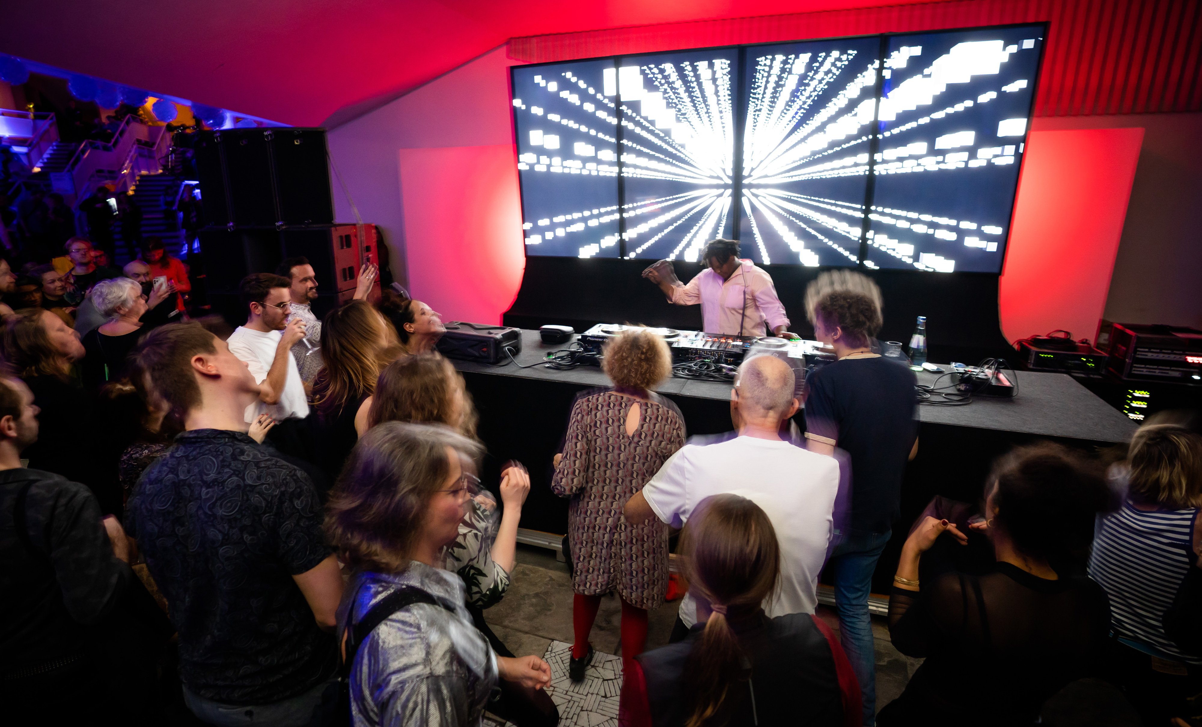 Stefan Goldmann, Kurator von Strom, stellte bei der ersten Ausgabe 2020 ein eigens entwickeltes audiovisuelles Format im Großen Saal vor. In diesem Jahr spielt er als DJ das Eröffnungsset im Foyer.