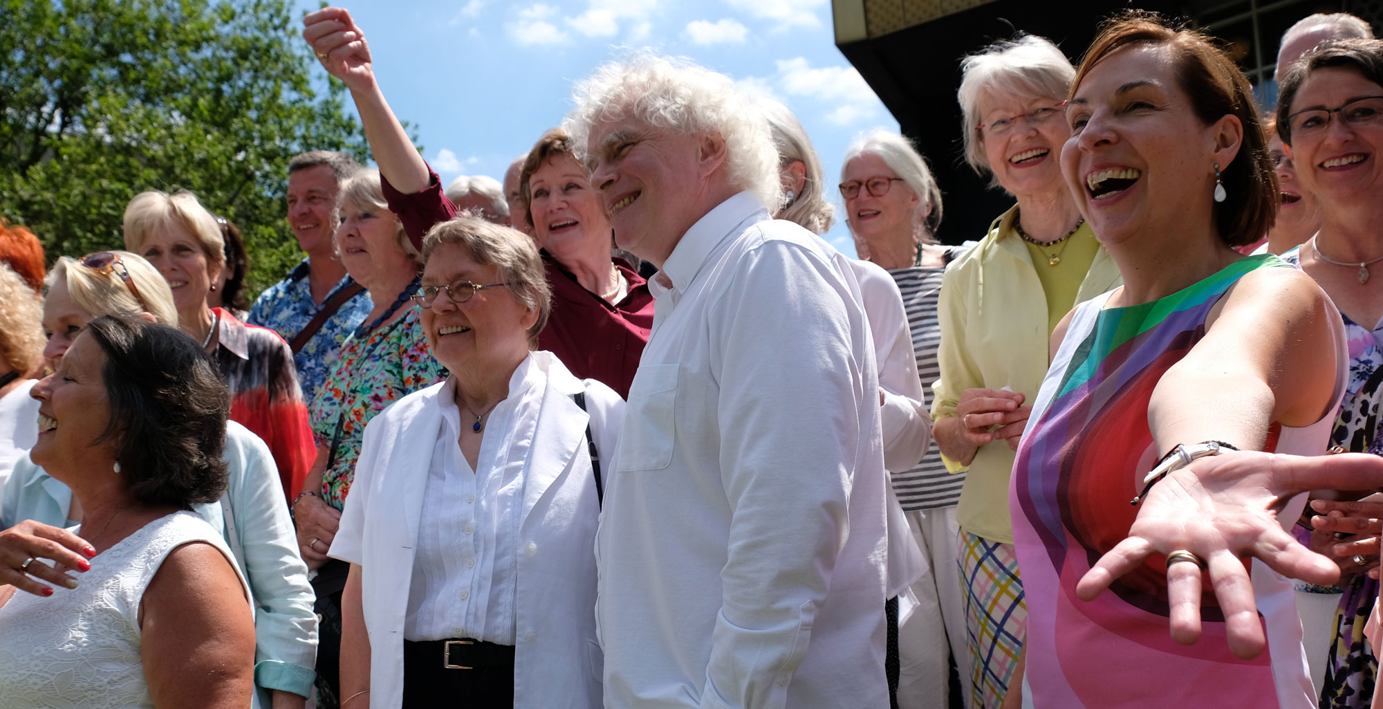 Als Ehrenamtliche suchte und sucht Gabriele Bühler Menschen, die ihr Berufsleben in der Regel schon hinter sich haben, aber gesundheitlich noch fit und aktiv sind. Auf ihren ersten Aufruf bewarben sich über 300 Interessenten. Wichtigstes Auswahlkriterium war und ist die Liebe zur klassischen Musik. Darüber hinaus gehören Fremdsprachenkenntnisse, Kontaktfreudigkeit, Teamgeist und Flexibilität zu den Schlüsselqualifikationen. Gabriele Bühler ging mit 38 Frauen und Männern an den Start. Waren sie zunächst nur als Serviceteam für das Publikum im Einsatz, so hat sich das Aufgabenfeld in den folgenden Jahren enorm erweitert. Auch backstage ist die Arbeit der Ehrenamtlichen mittlerweile hochwillkommen. So betreuen sie die Musikerinnen und Musiker, die zu den Probespielen eingeladen sind, und begleiten Schulklassen bei den Generalprobenbesuchen des Education-Programms. Unschätzbar auch ihre Hilfe bei den Vokalhelden-Projekten. Sie schnippeln Obst und Gemüse für die kleinen Sängerinnen und Sänger und entlasten mit ihrer Anwesenheit die Chorleiter, die sich nur noch auf ihre musikalische Arbeit zu konzentrieren brauchen.
